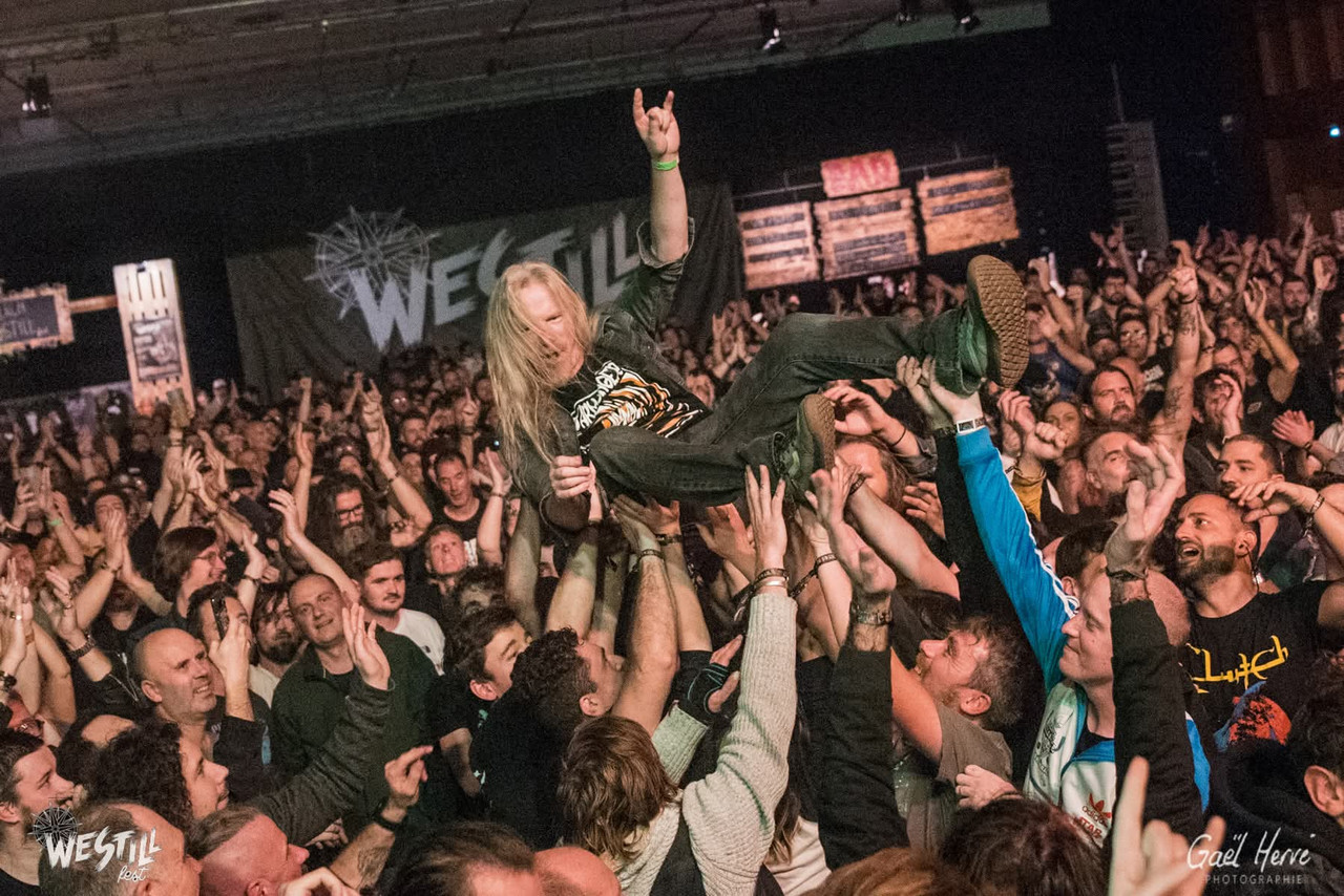 Je gardais un très bon souvenir de la dernière fois que j’ai vu Elder en live, au Hellfest 2022. Cependant, je ne les avais pas écouté depuis longtemps et je ne savais pas si ce qu’ils avaient à offrir en live correspondait encore à mes goûts musicaux. J’appréhendais également la longueur de leurs titres qui, joués en live, pourraient devenir lassants. Mais il n’en fût rien. Le concert des américains était excellent. C’était long, interminable, mais d’une fluidité remarquable, à tel point que c’est l’un des sets qui est passé le plus rapidement. Chaque note, chaque nuance était parfaitement audible (c’est d’ailleurs un énorme point positif du Westill). Les titres se sont enchainés, me laissant dans une transe hypnotique tout au long du set, les yeux parfois clos, parfois ouverts sur ce quatuor noyé sous des lumières tantôt vert et orange, tantôt rouge et bleu, ou bien tout simplement d’un rouge profond et inquiétant. Un très chouette concert, la troisième claque successive de la soirée !