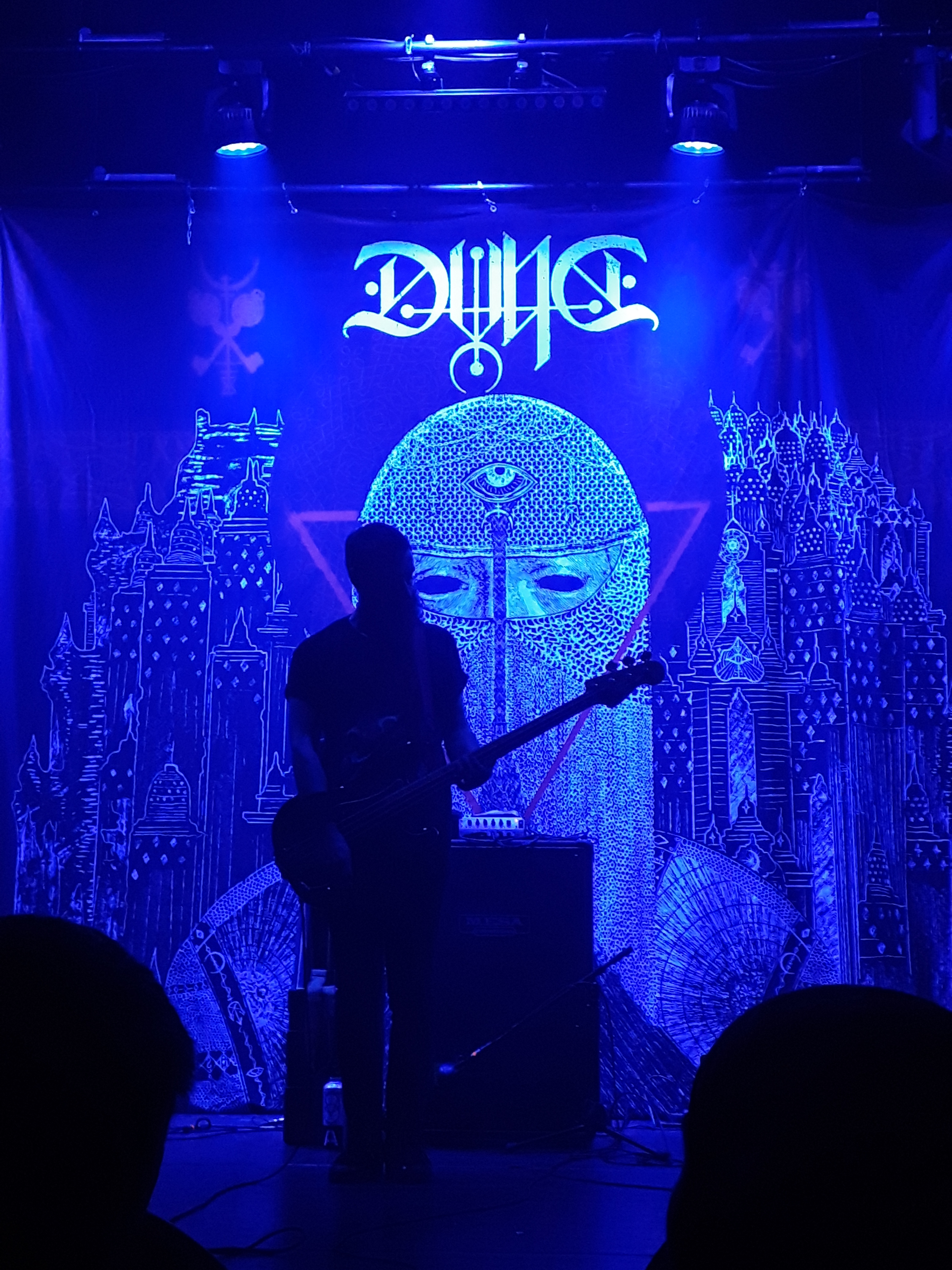 Comme bien souvent avec les concerts qui me touchent profondément, je ne trouve pas les mots pour décrire les émotions qui me traversent, voir me transpercent dans le cas de DVNE. Devant leur magnifique backdrop, dont le visuel est utilisé sur le merch de la tournée actuelle du groupe , les écossais (et un français, venu jouer à domicile devant sa famille et ses amis) nous ont offert un set lourd, puissant, envoutant,… Le genre de set qui te fait oublier le temps qui passe et la présence des autres. Seul(e) avec la musique, on ne pense à rien d’autre qu’à cet enchainement de notes, de sons et de vibrations. On oublie les tracas des dernières semaines. Leur dernier passage au Hellfest m’avait conquis également, sur cette nouvelle Valley noyée sous un soleil rasant en début de soirée. Mais dans cette salle aux dimensions plus contenues, dans cette pénombre, les émotions étaient décuplées. Un excellent concert, qui semble avoir conquis nombre de celles et ceux présents ce soir là tant les applaudissements étaient longs et sincères.
