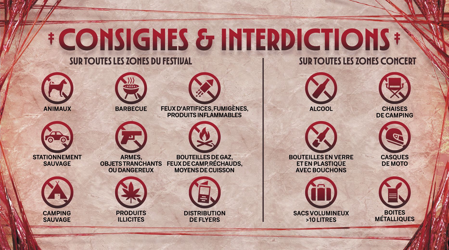Honte a moi, je suis probablement passé à côté de l’information portant sur les objets autorisés sur site, notamment dans l’espace concert ![]()