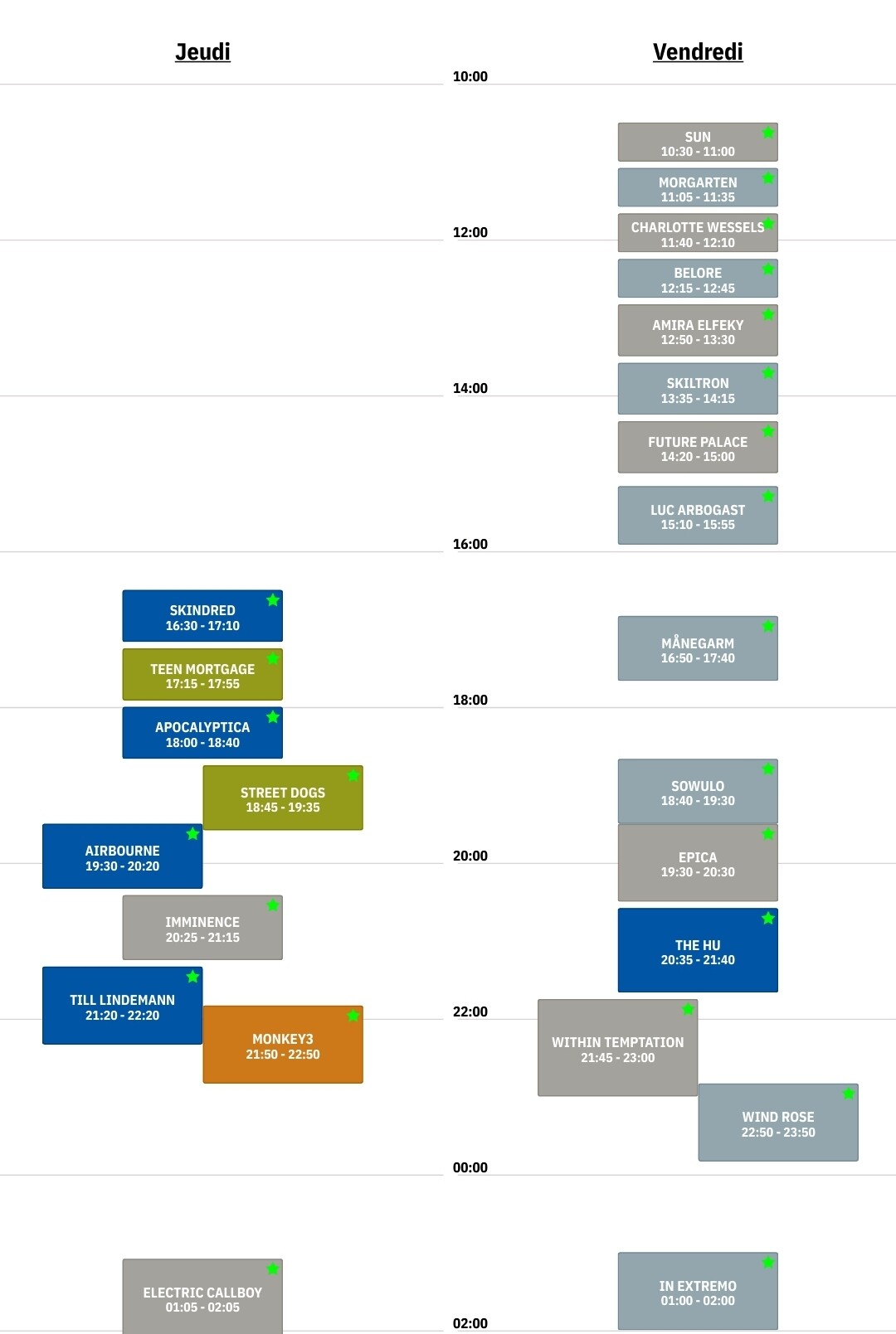 On se retrouve à l’apéro du forum ou le vendredi en Temple devant le folk metal, et bien evidemment devant In Extremo vendredi pour les esthètes…