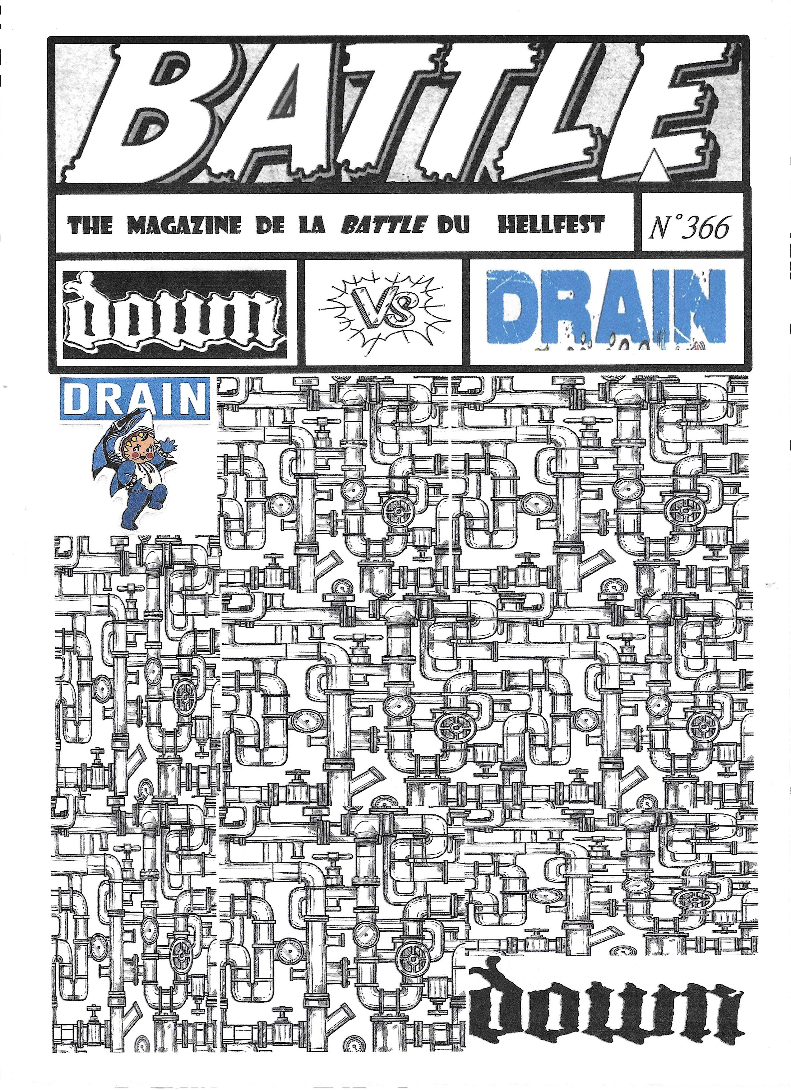 Ça fait du bien, un petit Drain de folie de temps en temps. En anglais, drain veut dire « vidange » (à peu de choses prêt), alors côté vignette, j’ai fait des tuyaux pas trop gros, juste assez larges pour qu’un bébé requin y fasse sa vie sans se luxer la dorsale.