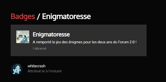 Enfin merci pour ce petit jeu, un grand bravo à @whitecrash franchement respect, et maintenant hâte d’avoir les explications tordues des énigmes quand même… niark niark nirak
