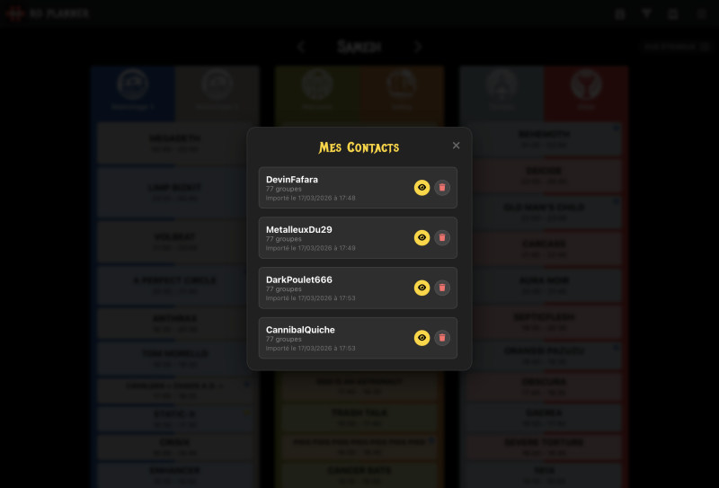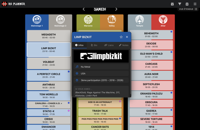 Topic dédié de l’appli de préparation Running Order du forum ! Un outil gratuit pour organiser vos 4 jours de festival. Posez vos questions, remontez des bugs, proposez vos idées d’améliorations et partagez vos plannings ici