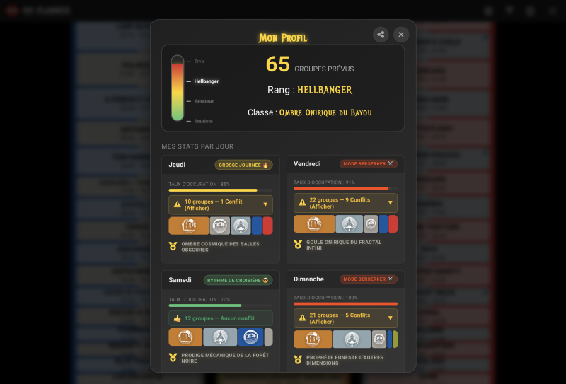 Votre Profil : Découvrez votre « Persona » (Touriste, Hellbanger, etc.) basé sur la typologie de vos choix.