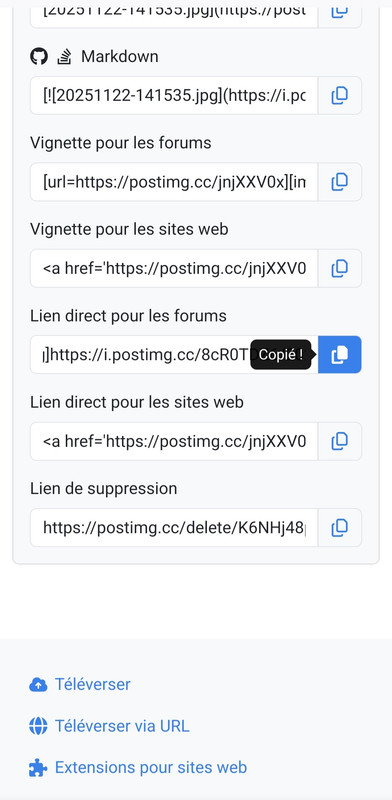 -Descendre pour choisir " lien direct pour forum" et copier le lien