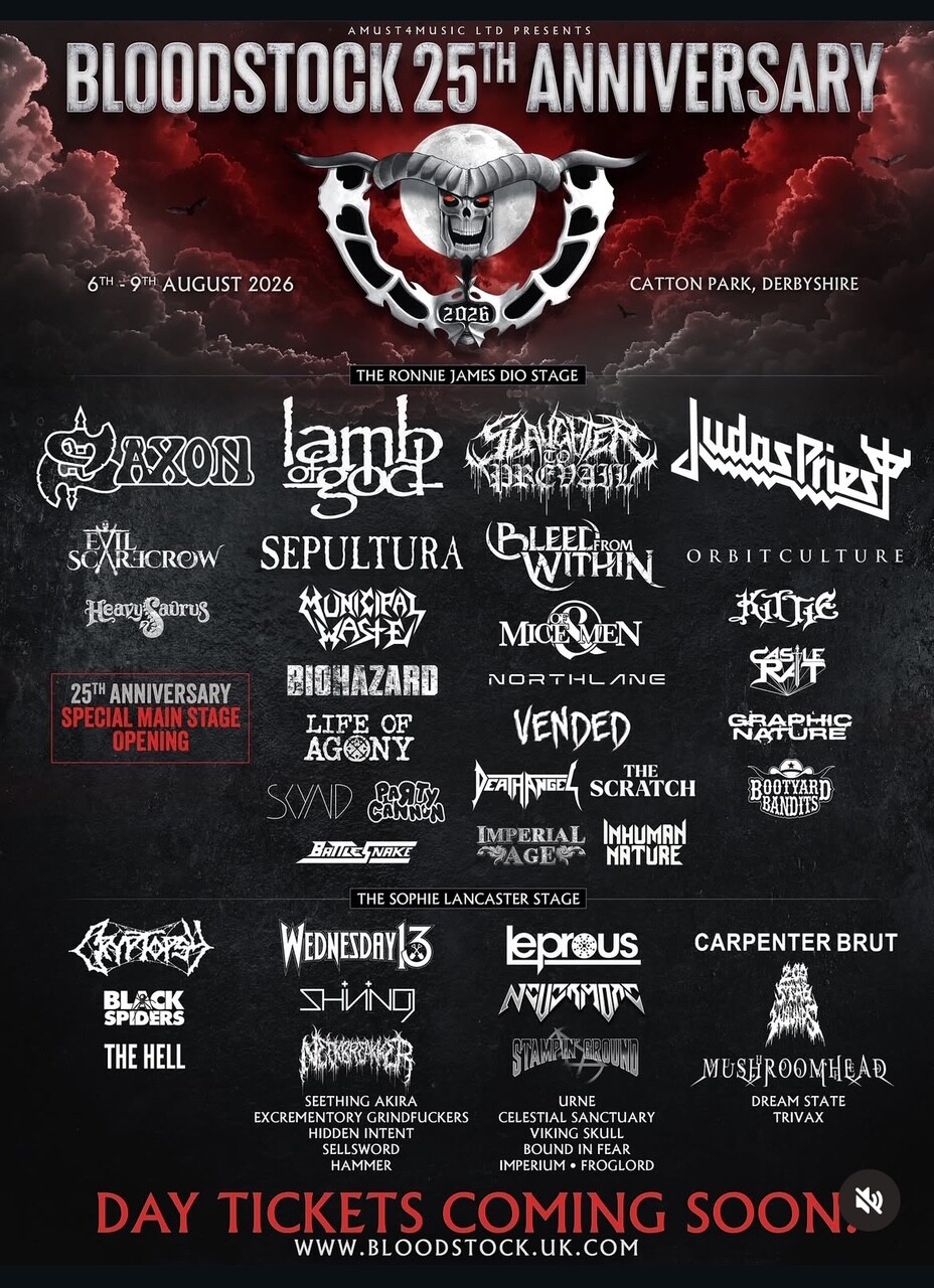 Affiche du bloodstock.C’est en août donc rien ne dit que certains groupes seront toujours en Europe,mais pour certains on peut toujours espérer (Sepultura en MS ce coup ci ! )
